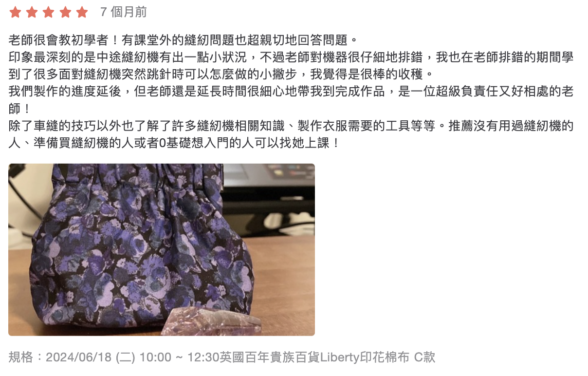 *如課後考慮購買入門縫紉機及各式縫紉用具之需求,工作室可提供建議及介紹,歡迎詢問
